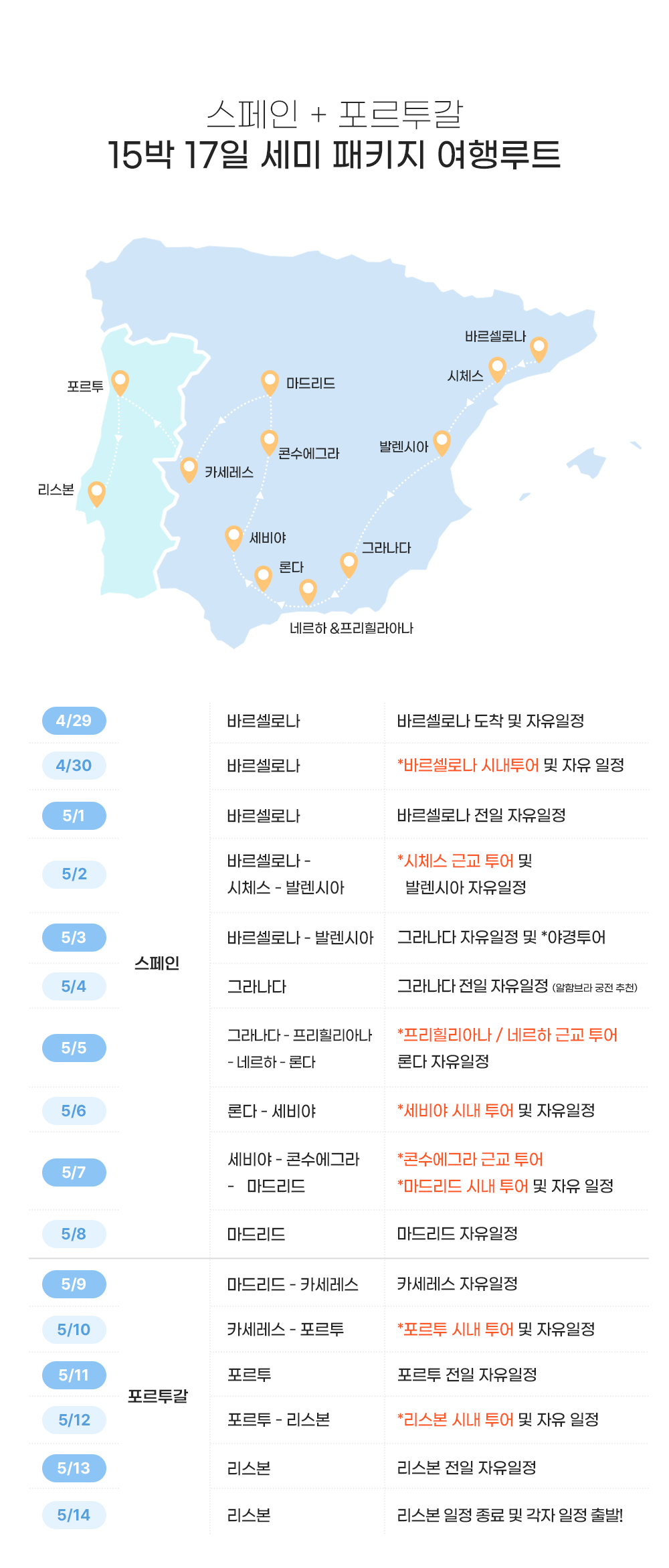 * 스페인+포르투갈 17일 일정은 스페인 12일 일정과 함께 진행됩니다.