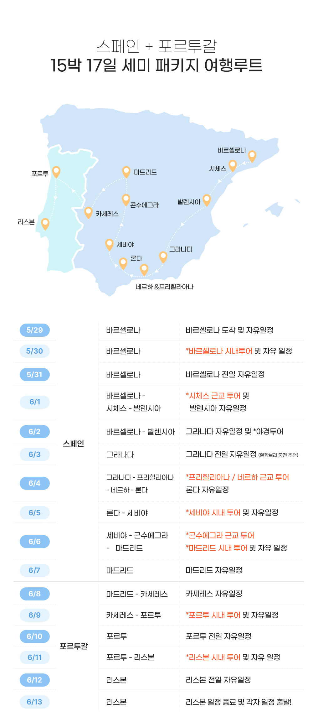 * 스페인+포르투갈 17일 일정은 스페인 12일 일정과 함께 진행됩니다.